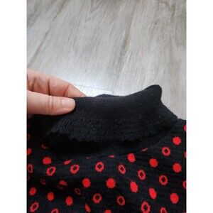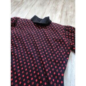 VTG Bobbie Brooks Knit Turtleneck Sweater Black Red Polka Dot 3/4 Sleeve Sz S