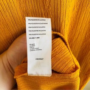 Crafted from a lightweight, breathable fabric in the color marigold, this dress will easily become a staple in any closet.