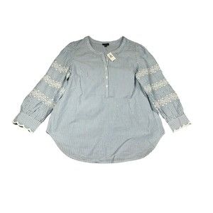New Talbots Tunic Top Womens Small Blue Striped Embroidered Accent S