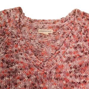Aeropostale Women's Cozy V-Neck Marled Pink Sweater