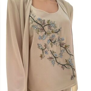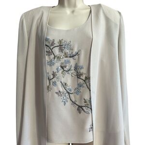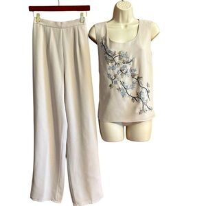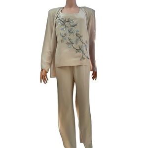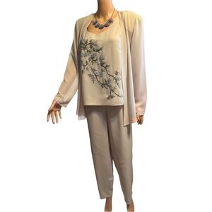 R&M Richards Vintage Elegant 3 Piece Cream Chiffon Embroidered Beaded Set