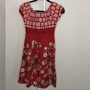 This dress is in EUC, midi with an under elastic gathered bodice tie, elastic short sleeves.