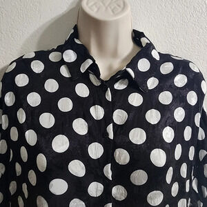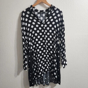 Black and white long sleeve polka dot button-down shirt dress with buttoned cuffs. No care tag. Size M. EUC.