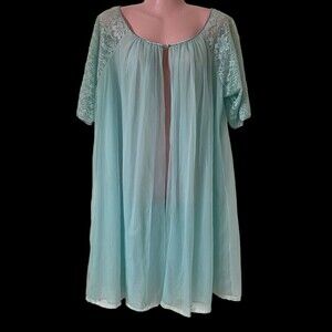 Vintage Vanity Fair Women's Robe Dressing Gown M Blue Chiffon Lace Nylon