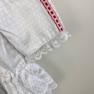Vintage Winnie the Pooh White Lace Red Ribbon Bow Dress. Toddler girl size 3T. USA made. Long sleeve white dress with lace, ruffles, ribbon, bows, and little flowers at the neck, too. Buttons in the back. Perfect for a Christmas party or pictures with Santa!
