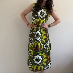 What a showstopper! 100% cotton. Vibrant floral print. Slit on one side. Vintage size 14 but runs a bit smaller. Please see photos for measurements but my best estimate is for a modern 10. Tagging as size L so this reaches the right audience.