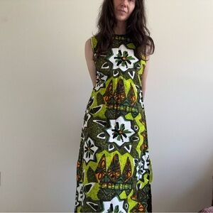 Vintage Rai Nani 70s Colorful Aloha Maxi Dress Hawaiian Sz 14