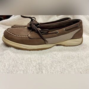 Womens Sperry Top Sider Brown And Tan Leather Boat Shoes Size 8.5M