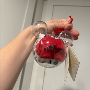 Brand new sealed mickey shaped plastic ornament with mickey socks inside! Size womens xs/s .