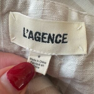 Women’s size 6 L’Agence Alex Paperbag shorts. Belted, high waist. Linen blend material. Tan and white striped, excellent condition!