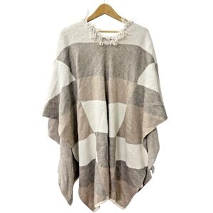 Chico's Women's ONE SIZE PRE-OWNED Tan/Beige Shawl/Wrap Scarf Open Poncho Fringe