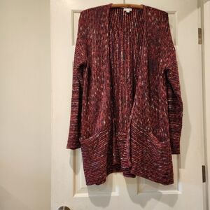 J.Jill Open Front Knitted Cardigan Oversized Front Pockets Multicolor Knit