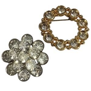 Add a touch of elegance with these stunning gold and silver crystal brooches. Perfect for any occasion.