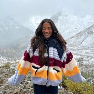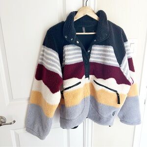 New Free People Hit The Slopes Fleece Jacket Run Stripe Papaya Combo