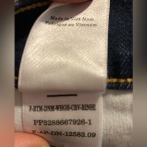 @lindaandbean Hello! Sorry for the delay. The waist measurement is 13.5” across and I’m not sure about the color name from the website but I’m going to add a picture of the style number tag. Maybe that will help? It is a dark blue wash.