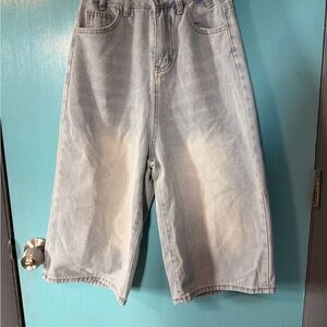 Classic black denim pants with button closure. Versatile and stylish.