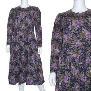 Vintage 80s Laura Ashley Cotton Wool Modest Cottagecore Floral Dress Women's 12