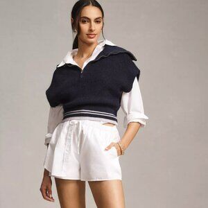 Anthropologie Women's Maeve Quarter-Zip Sweater Tee Navy Blue Size XS