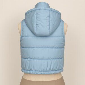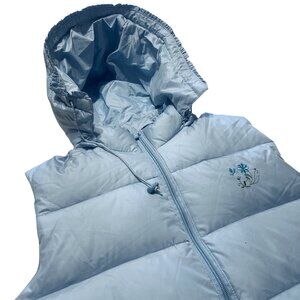 Girls Sky Blue Hooded Puffer Jacket Vest (Youth 12–14) – Embroidered + Down