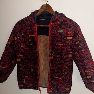 LL BEAN BOYS 6x/7 REVERSIBLE BROWN PLUSH & RED PLAID Jacket