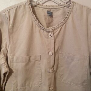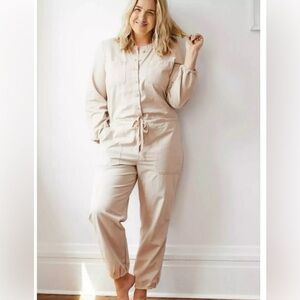 This Aerie jumpsuit is the perfect throw-on-and-go piece — soft, lightweight, and effortlessly flattering. The relaxed silhouette, adjustable drawstring waist, and jogger-style cuffs make it comfy enough for lounging but cute enough for errands, travel, or weekend wear. Measurements: • Pit to pit: 21” • Inseam: 26” • Total length: 46” • Waist across: 19.5” (adjustable drawstring) Features: • Button-front closure • Long sleeves with elastic cuffs • Chest pockets + patch pockets • Elastic jogger-style ankle cuffs • Neutral cream color (super versatile) • Great condition ✨ From a clean, smoke-free home. Pet-friendly, but pets don’t come near inventory. Style Ideas: Pair with sneakers and a denim jacket, layer with a cardigan, or add sandals and a tote for an easy spring/summer outfit. Style Tags / SEO: #Aerie #AerieStyle #Jumpsuit #UtilityJumpsuit #NeutralStyle #MinimalistOutfit #CasualOutfit #Loungewear #WeekendStyle #TravelOutfit #OnePieceOutfit #ComfyStyle #ModernBasics #EverydayWear #SoftNeutral