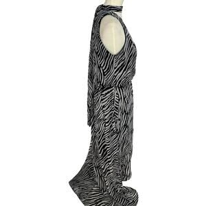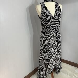White House Black Market Zebra Print High Low Flowy Dress Keyhole Neck Front Slit