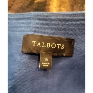 Talbots Jacket Women's 18 Cobalt Blue Linen Collarless Open Woven 3/4 Sleeve