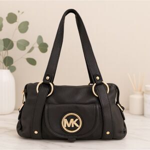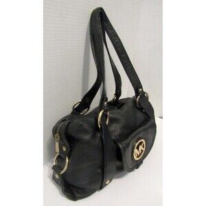 Michael Kors Satchel Bag Fulton Black Pebbled Leather Shoulder Bag Purse