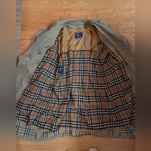 Vintage Burberry Trench Coat, measurements provided, probably from the 80s, tan with vintage check pattern, wool liner included, overall good used condition, there are minor signs of wear and discoloration/stains here and there but nothing that affects the items use, this is a timeless classic and is perfect for this season!