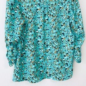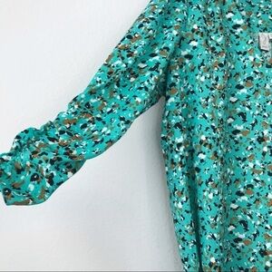 Joie Ditsy Floral Ruched Puff Sleeve Oversized Retro Green Top Blouse.