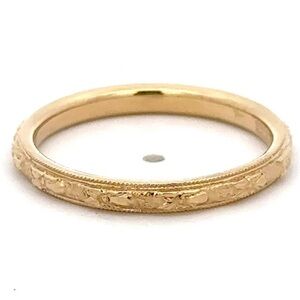 A rare example of an 18k engraved Orange Blossom band. The majority of these bands were made in 14k but this one is an unusual in its luxurious 18k solid gold composition.