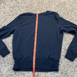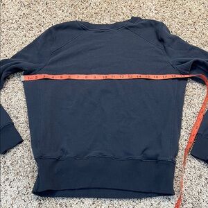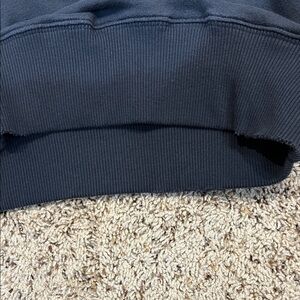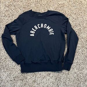 Navy sweatshirt featuring bold white Abercrombie lettering. Comfortable and casual style.