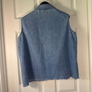 Vintage Winnie the Pooh Chambray Denim Cut Off Button up Vest Size Large