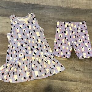 The softest fabric! Super comfortable drop waist dress with matching biker shorts. In great used condition. Pictured inside out to show no holes and no stains.