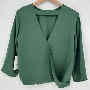 Amanda Uprichard Blouse Sz S NWT Deep Sage Green Wrap Front Long Sleeve Top