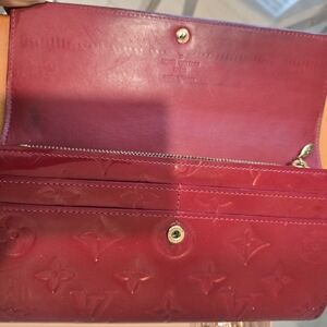 Louis Vuitton Sarah wallet, LV Vernis red, Louis Vuitton long wallet, Portefeuille Sarah, Louis Vuitton France wallet, designer wallets, luxury accessories. comes with complimentary chain and LV box