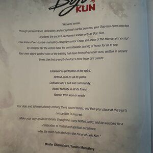 With hushed tones, Senseis talk about the Dojo Kun. Most only know about it from myth, but the martial arts contest is real. Having your school participate is a great honor. However, only one teacher will have their student standing in the final winner's circle.