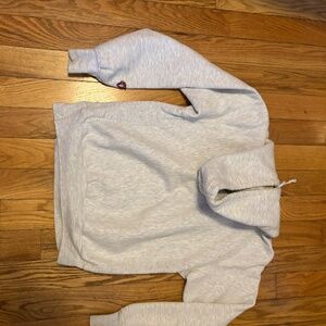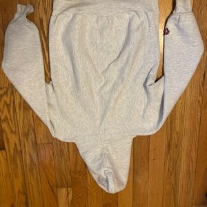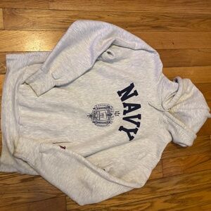 Medium,Navy logo, oatmeal gray, heavyweight, drawstring, feels & looks new but very comfortable, greT for layering, , also has that over sized look and feel ,great for the winter weather make an offer. (shipping will be free!!)