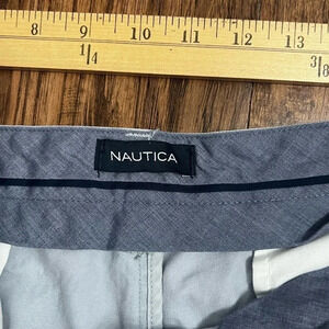 Nautica the deck short/ classic fit, size 40. Grey color in good used condition. Zipper and button waist with belt loops, two side pockets and two back pockets. Additional measurements available upon request. Fiber content label has been removed.