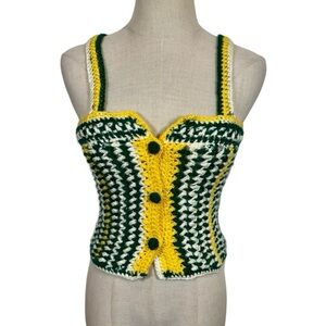 Vintage Handmade Granny Crochet Knit Button Corset Style Bustier Tank Top Vest
