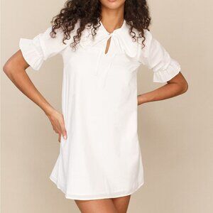 The Driftwood has a relaxed fit throughout, but still has a cute shape to it. This dress features puffed sleeves, a front tie on the keyhole, and a collared neckline for a more sophisticated look.