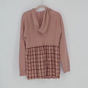 Motherhood Maternity Pink Hoodie Tunic With Plaid Hem Size Large