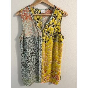 CAbi 5547 Golden Glow Split Blouse Sleeveless Floral Tunic Top Size M Boho Chic