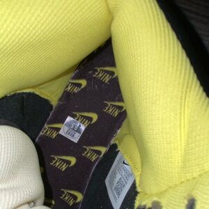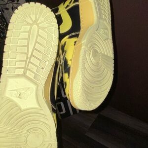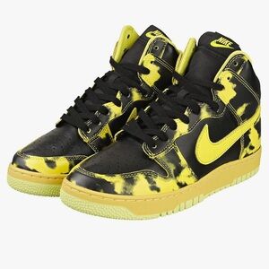 Eye-catching Nike sneakers with a black and yellow tie-dye pattern. High-top design for style and support. Ideal for active wear