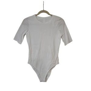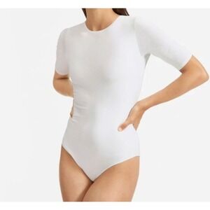 Everlane The Short Sleeve Crew Neck Bodysuit (Bikini) White S NWT $48