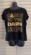 Black Star Wars t-shirt with gold lettering and white star pattern. Ideal for fans.