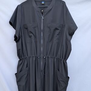 Elegant black jumpsuit featuring a sleek front zipper and handy pockets. Ideal for any occasion.