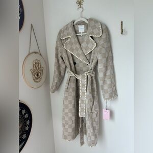 Elegant NWT size M with a checkered pattern. Features a stylish belt and lapel design. I love the colors and checkered pattern! Wool blend material. Bundle other nwt designer clothes, bags, jewelry and more from my closet for an offer! I ship same day & update my closet daily