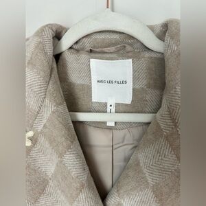 Avec les Filles Wool Blend Beige Checkered Coat