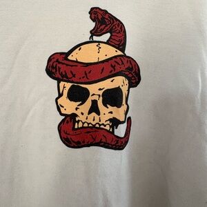 Light gray t-shirt with a striking skull graphic. Ideal for casual wear.